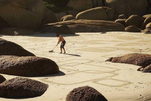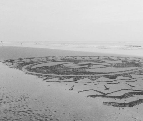 Художник создаёт свои работы во время отливов, и рисунки в конечном счёте смываются приливной волной, тем самым отражая прекрасную хрупкость жизни.