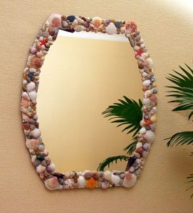 Переходим к последнему этапу декорирования зеркала в морском стиле. Когда все материалы наклеены на раму, остается подождать, пока полностью высохнет клей. Затем надо очистить поверхность зеркала и ракушки от остатков клея. После этого декорированную раму можно покрыть бесцветным лаком. Но это необязательно: лак служит для укрепления конструкции, но покрытые лаком ракушки смотрятся не так натурально, а порой даже кажутся искусственными.