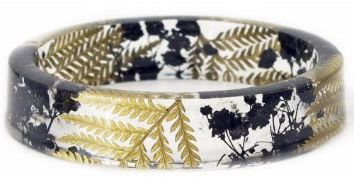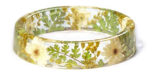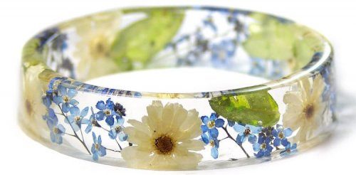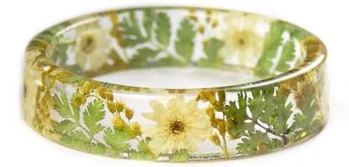 Дизайнер и художница по имени Сара из творческой мастерской Modern Flower Child, штат Орегон (США), создаёт из цветов, травы и других природных материалов, заключённых в прозрачную смолу, красивые браслеты, которые не дадут забыть о самом прекрасном времени года.