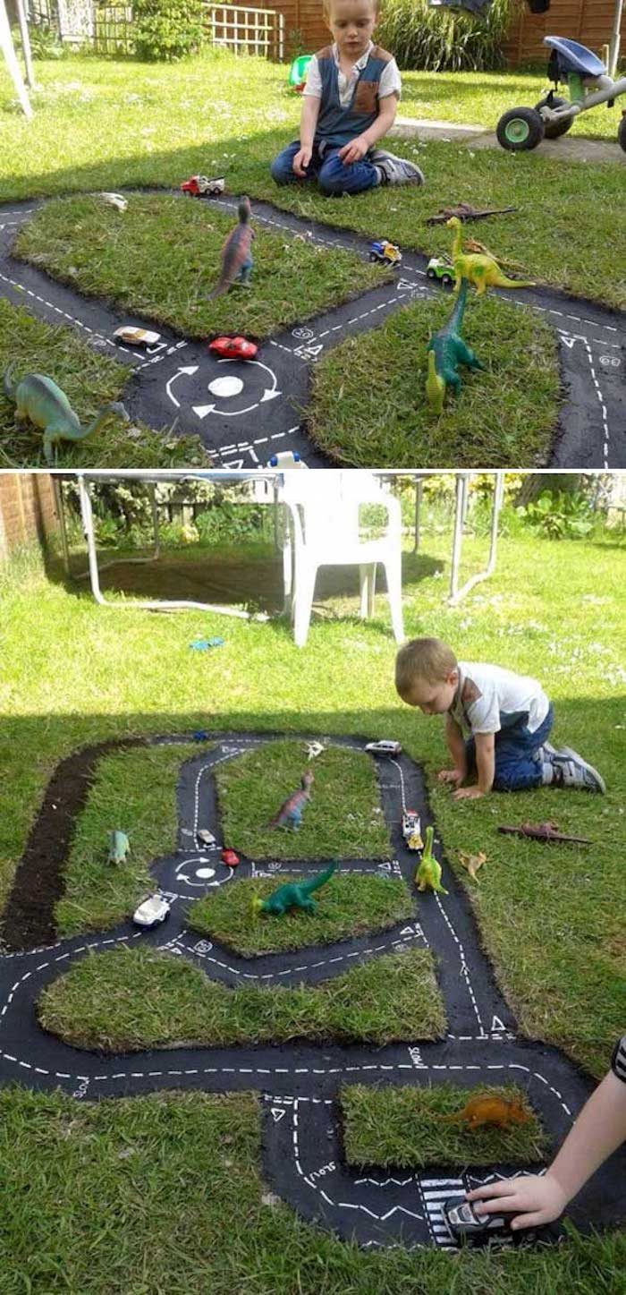 Еще один интересный элемент в саду для развития ребенка. Есть специальные грифельная краска, которую наносят на фанеру или ДСП, в итоге у вас получается бюджетный вариант грифельной доски.