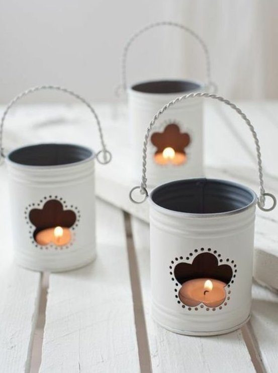 Их из жестянок можно наделать на любой вкус. Плюс в том, что они впишутся в любой интерьер, даже самый дорогой, как деталь стимпанка.