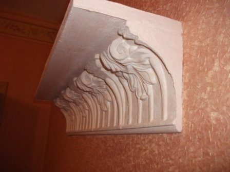 Лепнина из гипса не очень дорогая, но она тяжёлая, ломкая и её сложно крепить. Лепнина из пенополиуретана красивая, качественная и, соответственно, дорогая.