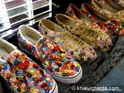 А что? Очень даже неплохо смотрятся туфельки) Прикольно и веселенько). Вполне подойдет пуговичная идея для декорирования и украшения летней обуви или комнатных тапочек.