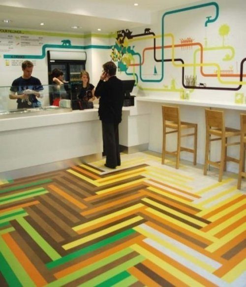 Очень оригинальные рисунки полов! Долго придётся привыкать! А если ещё и с похмелья…