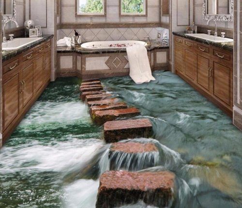 Пройтись по такому полу человеку со слабым вестибулярным аппаратом будет непросто, ведь, глядя на эти гиперреалистичные рисунки, волей-неволей поддаёшься эффекту присутствия…