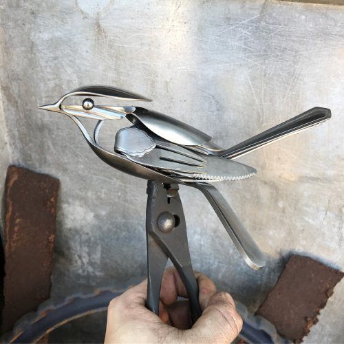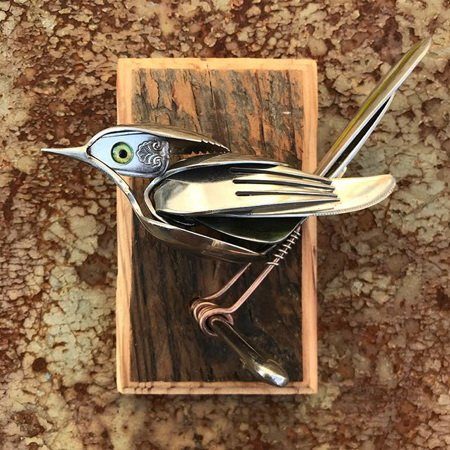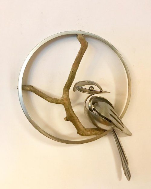 Скульптуры птиц из старых вилок и ложек