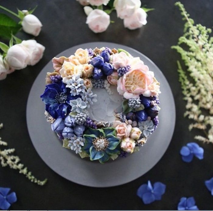 На самом же деле реалистические цветы выполнены из масляного крема.