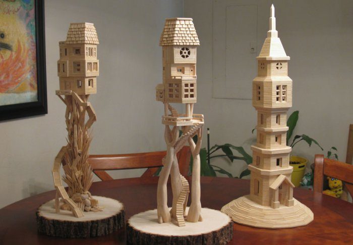 В среднем, на создание одной конструкции уходит по нескольку тысяч зубочисток. Что касается самого масштабного проекта, то он называется «Город зубочисток» (Toothpick City) и для его реализации понадобилось свыше 100 тысяч зубочисток. Причем, на все про все у автора ушло более восьми лет. В то же время, «Город зубочисток» является развивающимся проектом и Боб Морхед (Bob Morehead) планирует расширять город и дальше. Предлагаем вашему вниманию самые сложные и запоминающиеся работы американца.