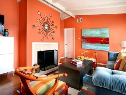 Признаюсь вам: я давно мечтаю о гостиной в оранжевом цвете. Думаю, что в ней будет уютно и солнечно.
