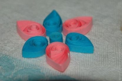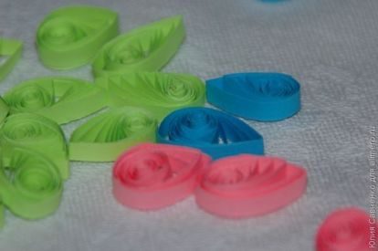 — затем накрутить бумажных полосок разных цветов (у меня было три цвета) и придать им форму капелек (см. здесь)