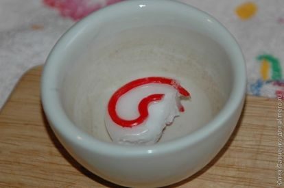 — теперь нам понадобится воск или парафин (я взяла кусочек свечи), необходимо растопить его на водяной бане и залить в бутылочку слоем в 1-2 см