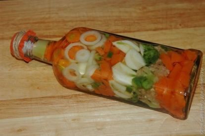 — выложить на дно бутылки слой тыквы