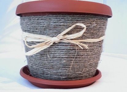 С тех пор я несколько раз использовала бечевку для поделок. Для дочери я сделала стаканчик для канцелярских принадлежностей, обмотав бечевкой жестяную банку. Еще в такой же технике я сделала корзинку для хранения очков
