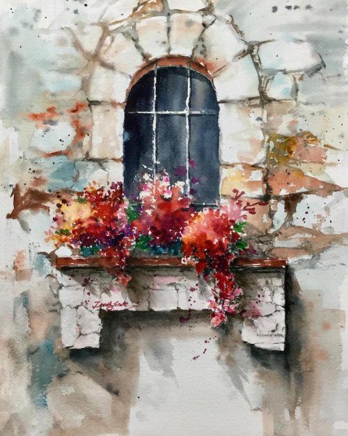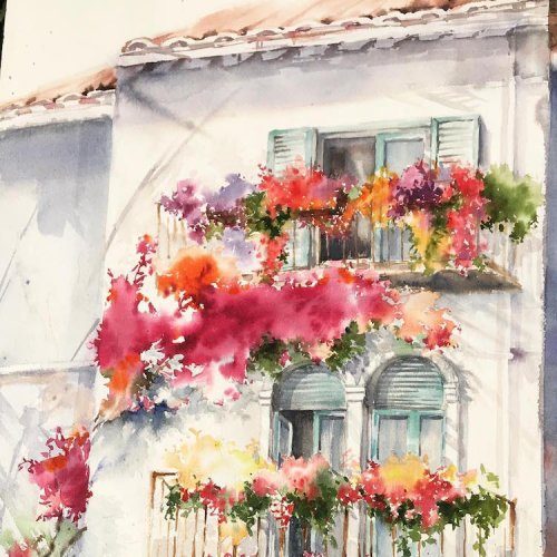Её работы в подробностях запечатлели причудливые улицы, старомодные окна, витрины кафе и балконы в окружении деревенской красоты и цветочных горшков.