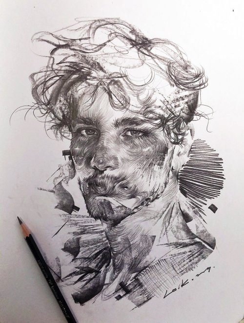 Художник Lee.K из Сеула создаёт невероятно динамичные портреты, используя сочетание угольного карандаша, простого карандаша и чернил.