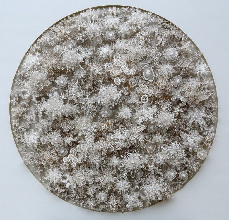Известный благодаря своим филигранным работам в виде бумажных микроорганизмов, ирландский художник Роган Браун использует «призму воображения» для создания поразительных произведений искусства. Творения Рогана Брауна отличает то, что это не просто причудливые узоры, а своеобразная интерпретация окружающего мира. Создает свои сложные «кружева» автор, по большей части, руками, вырезая виток за витком. И лишь изредка применяет лазерную резку бумаги. Вдохновение художник черпает во всем: от очертаний клеток под микроскопом до крупномасштабных геологических структур.