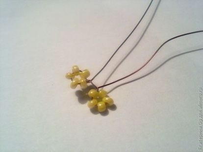 Набираем 5 желтых бисеринок и скручиваем. И так три раза по 5 бисеринок.