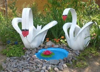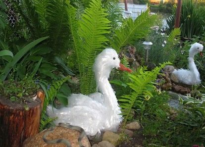 Когда дочки были помладше, мы организовали на даче детский уголок. Муж сделал большую песочницу и качели. Мы даже горку купили! Как это принято, основной декор на нашей детской площадке был из автомобильных шин и пластиковых бутылок. Согласитесь, у нас это самый популярный материал для изготовления садовых фигур.