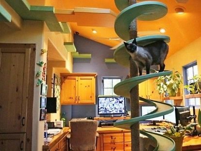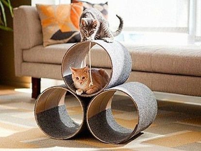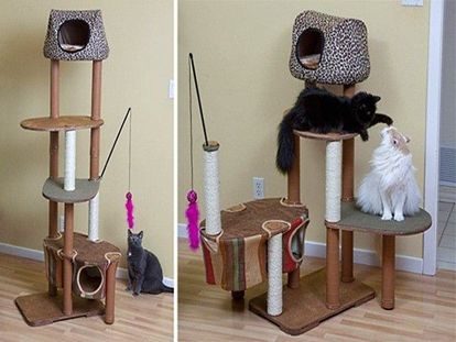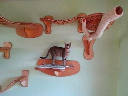 Нашла в интернете популярные магазины для животных, а там всевозможных подвесных мостиков, лазеек и корзинок великое множество. А помимо всего этого изобилия есть и уютные домики, и удобные царапки, и даже качели. Правда, цены не очень-то вдохновляли, но ведь главное – идеи! А их я отыскала достаточно для того, чтобы хозяин мог самостоятельно создать нечто подобное из подручных материалов.