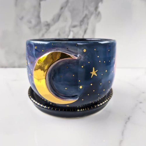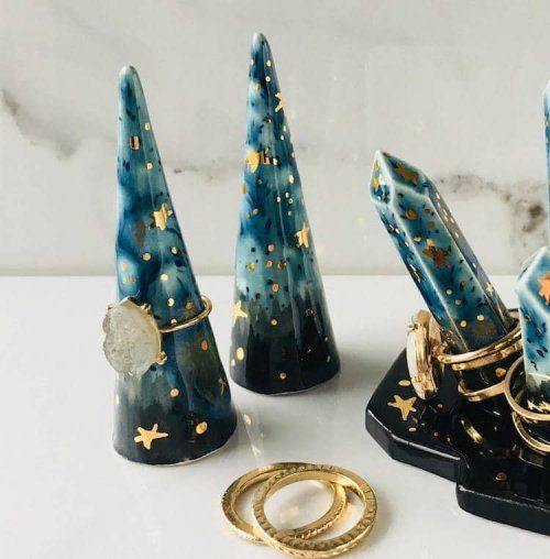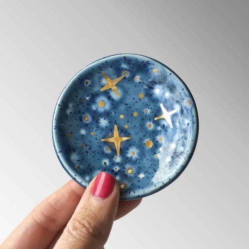 Художница Наоми Зингер (Naomi Singer) создаёт из керамики чашки, блюдца и другие предметы, украшая их галактическими узорами и красочными созвездиями.