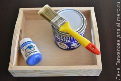 Теперь выбираем цвет, в который мы будем красить поднос. Учтите, что нижний слой краски при «растрескивании» кракелюра будет выглядывать из-под верхнего слоя краски. Я решила покрасить дно подноса синим цветом.
