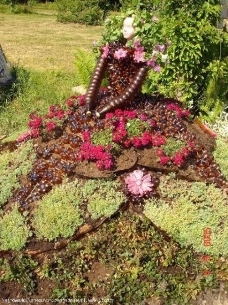 Декор клумбы из пластиковых бутылок