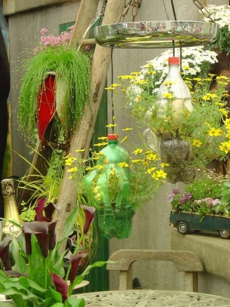 Декор сада: горшки для цветов из пластиковых бутылок
