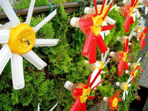 Поделки и украшения для дачи и сада из пластиковых бутылок фото