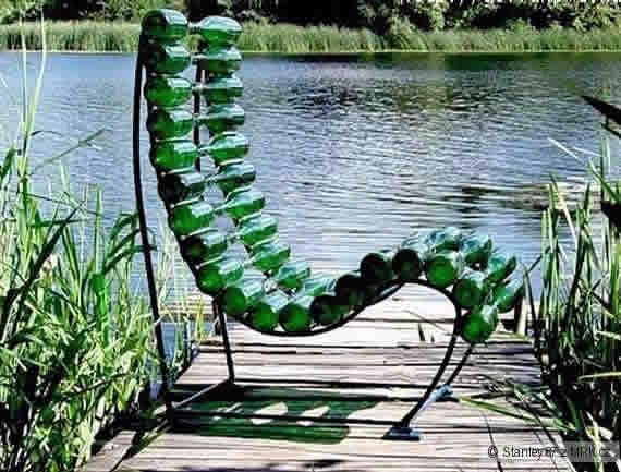 Кресло из бутылок из стекла — это уже совсем creative, но согласитесь, очень интересно выглядит.