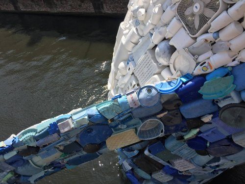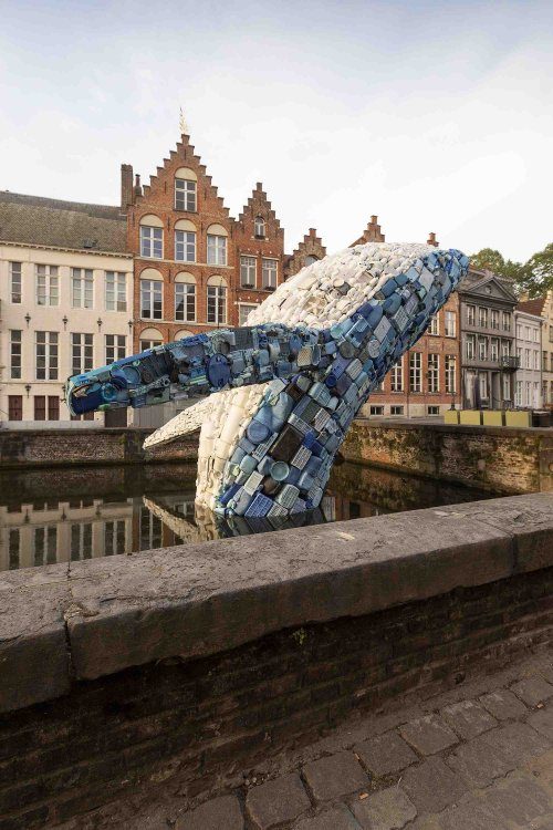 В рамках фестиваля современного искусства и архитектуры Bruges Triennial, который каждые три года организуется в историческом центре Брюгге, Бельгия, бруклинская архитектурно-дизайнерская компания STUDIOKCA создала скульптуру кита высотой почти 12 метров, состоящую почти из 5 тонн пластиковых отходов, извлечённых из вод Тихого и Атлантического океанов.