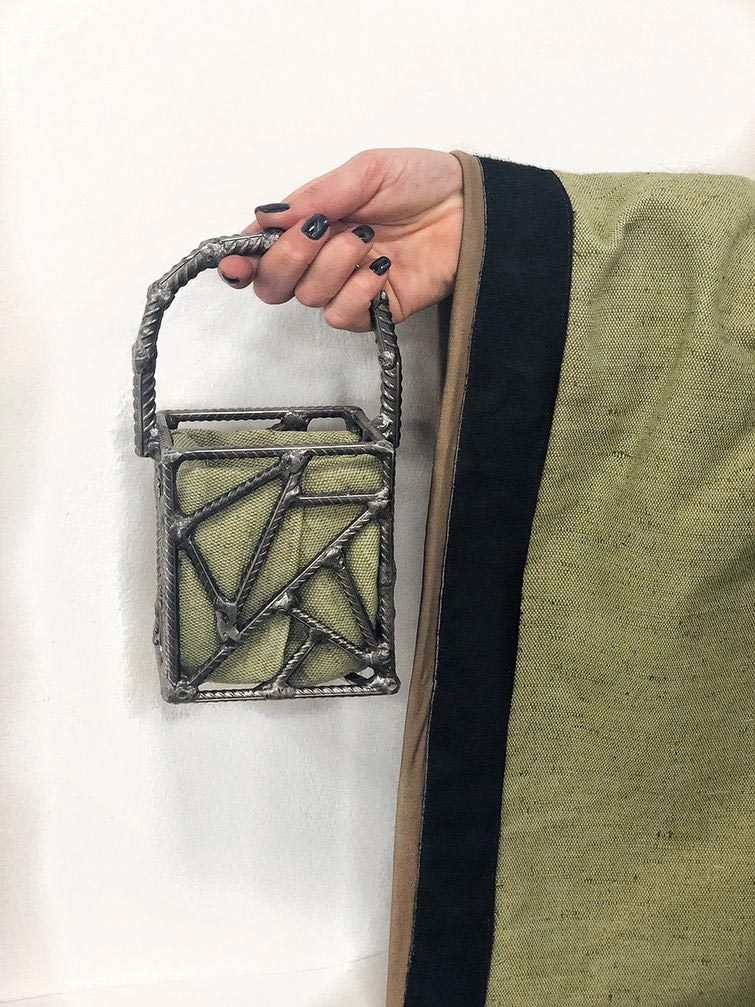 Кроме того, в коллекции работ Александры также присутствуют сумочки из обычной арматуры