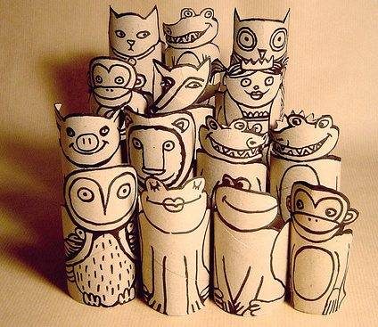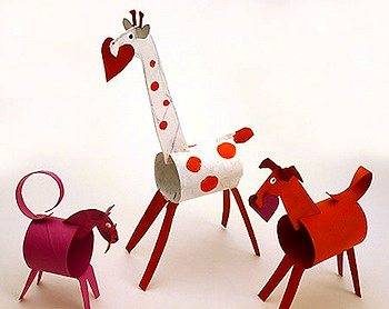Можно делать животных посложнее. Рулончиком будет тело животного, а голову и конечности нужно вырезать из картона и приклеить.