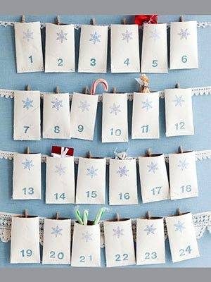 Календарь «обратного отсчёта», который поможет деткам лучше ориентироваться, когда же уже наступят долгожданные праздники («конвертики» просто прикреплены прищепками):