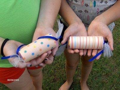 Трубочки просто обклеиваются цветной бумагой (фольгой, самоклеющейся бумагой...) или раскрашиваются. Я сделала трубочки полосатыми, используя бумажный серпантин (который использовала, например, для изготовления этой открытки ручной работы) и закрепляя его степлером.