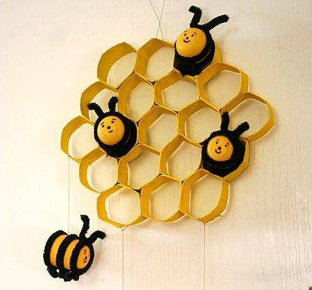 Рулончики от туалетной бумаги можно нарезать на колечки, покрасить и подвесить как мобиль: