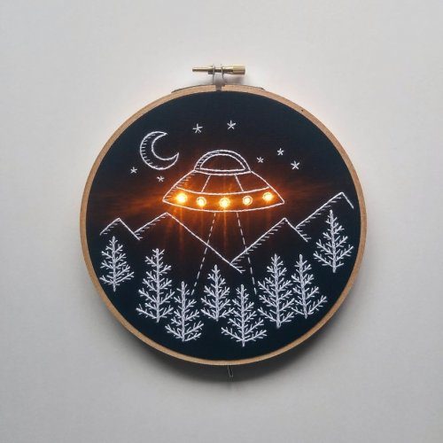 Со временем муж научил художницу всей электронной части, и так родился проект под названием «A mao» — коллекция вышивок с маленькими огоньками.