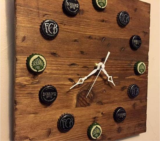 Вот несколько фото-примеров, как могут выглядеть самодельные часы из крышек.