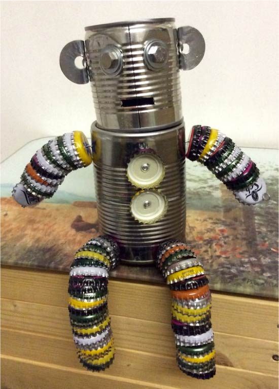 Идея 2. Детские игрушки (+ мастер-класс)Как из пластиковых, так и из жестяных крышек из-под бутылок получаются классные детские игрушки — роботы, трансформеры, космонавты, железные человечки и фигурки животных.