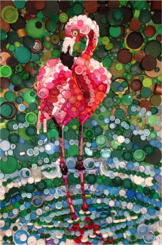 Картина из пластиковых крышек