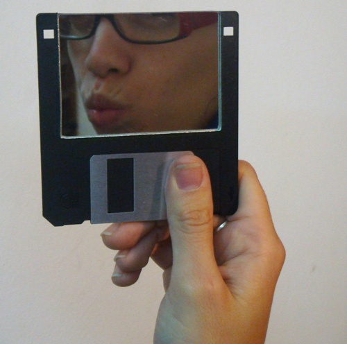 Дискета в качестве рамки для зеркальца.