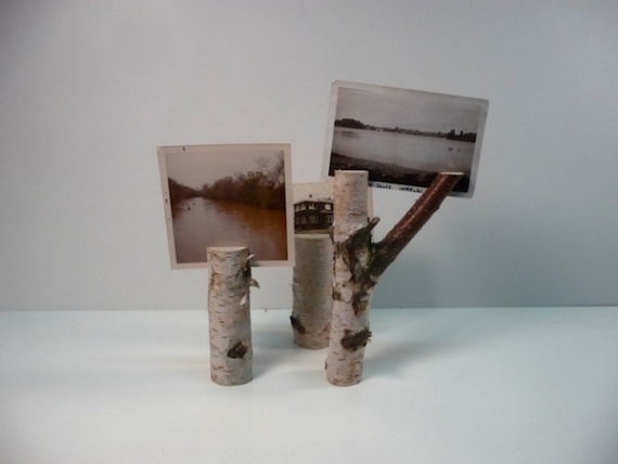 Деревянные чурки вместо подставки для фотографий.