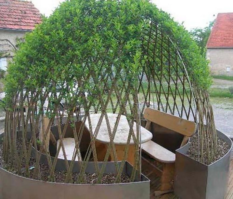 Из веточек ивы можно создать вот такую оригинальную беседку. Я просто в восторге от этой идеи!