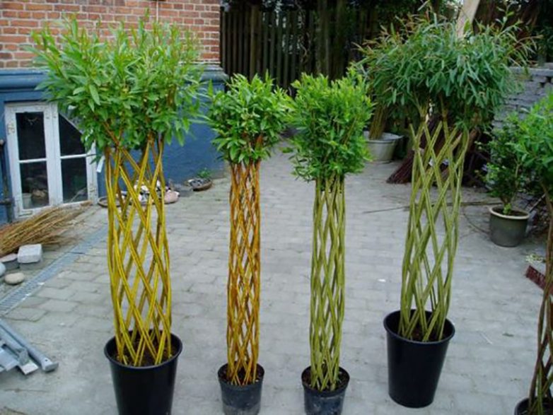 С помощью веток вербы можно сплести поддерживающие опоры для кустов, которые под тяжестью цветов могут обломать ветки.Например, красиво будет смотреться аккуратная оградка из вербовых прутьев, которая будет поддерживать тяжелые цветы пиона.