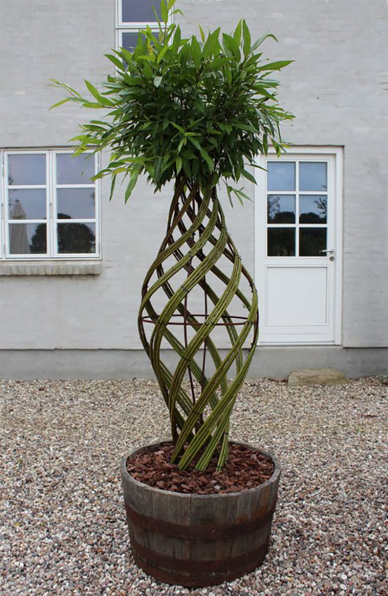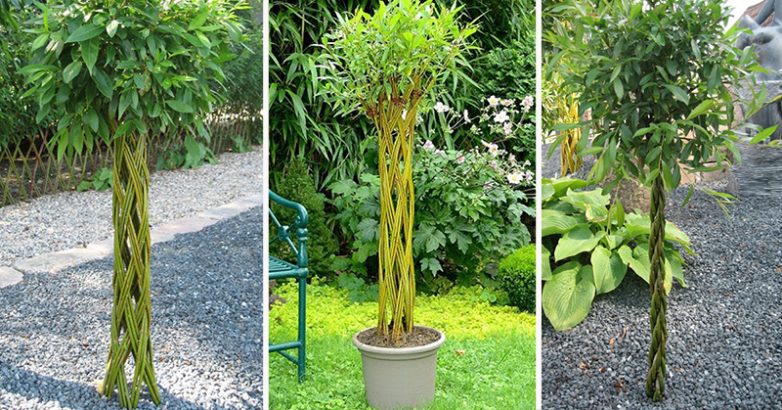 Ты можешь украсить свой садовый участок и помочь растениям благодаря таким плетеным находкам. Ведь из прутьев вербы или ивы можно сплети опору для вьющихся растений и лиан. Гибкие прутья — замечательный природный материал.