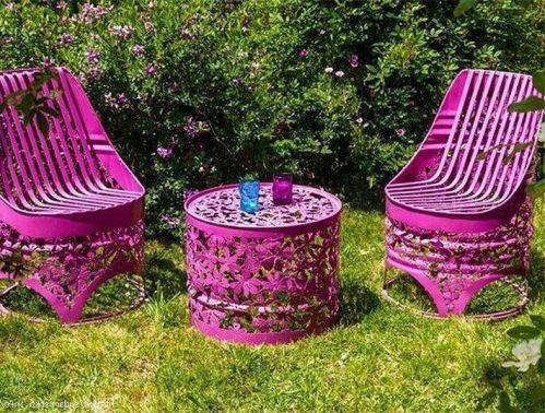 — для отдыха в саду реально смастерить такую непромокаемую садовую мебель. Вариантов дизайна такой мебели, можно придумать много, предлагаю варианты, которые нашла в интернете.