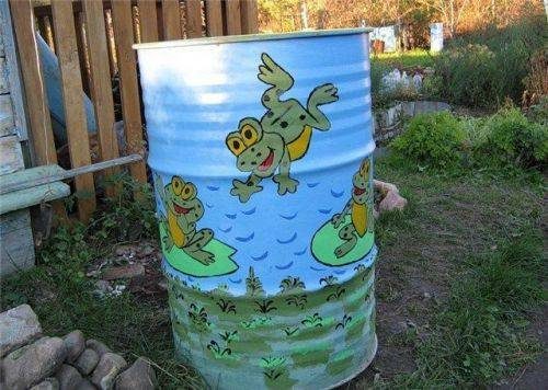 Красивые бочки на даче хотели бы иметь, наверное, многие из тех, для кого садоводство любимое занятие, а не трудовая повинность. Сегодня в продаже можно найти большое разнообразие пластиковой емкостей, но все же железные бочки, к которым все уже привыкли, главенствуют на наших дачах. Творческие садоводы выложили в интернет много вариантов раскрашенных бочек. Например, таких: