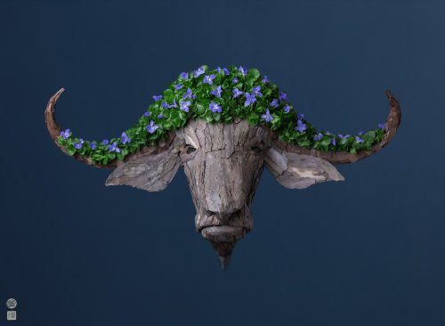 Собирая листья, прутики, веточки, цветочки, лепестки, семена и другие природные материалы, он превращает их в разнообразных насекомых, а в последнее время стал создавать и головы более крупных животных.