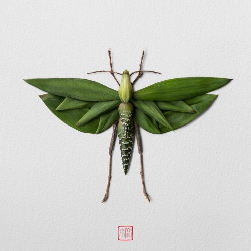 Раку Иноуэ (Raku Inoue) — дизайнер из Японии, который любит создавать скульптуры насекомых из самых разнообразных природных материалов. Наши постоянные читатели уже знакомы с его творчеством.