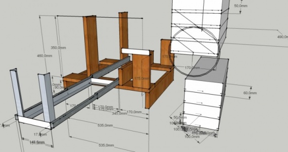 Понял что этого не достаточно и нужно привлекать вычислительную технику. Скачал бесплатный Google SketchUp, потратил пол часа на изучение и приступил к проектированию. Размеры с точностью до миллиметра вызывали улыбку, все же решил ориентироваться на высокую точность и в последствии оказался прав. Вот что получилось: