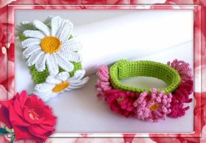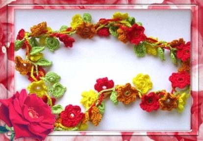 Так, с материалом все решено, теперь нужно определиться с узором, цветом и стилем моего очередного украшения. Поможете, рукодельницы? Взгляните, сколько вариантов я смогла подобрать — вязаные спицами и крючком, плетеные узелками макраме и обычной косичкой. На любой вкус. Делитесь своим мнением и пишите, какой из вариантов понравился больше.